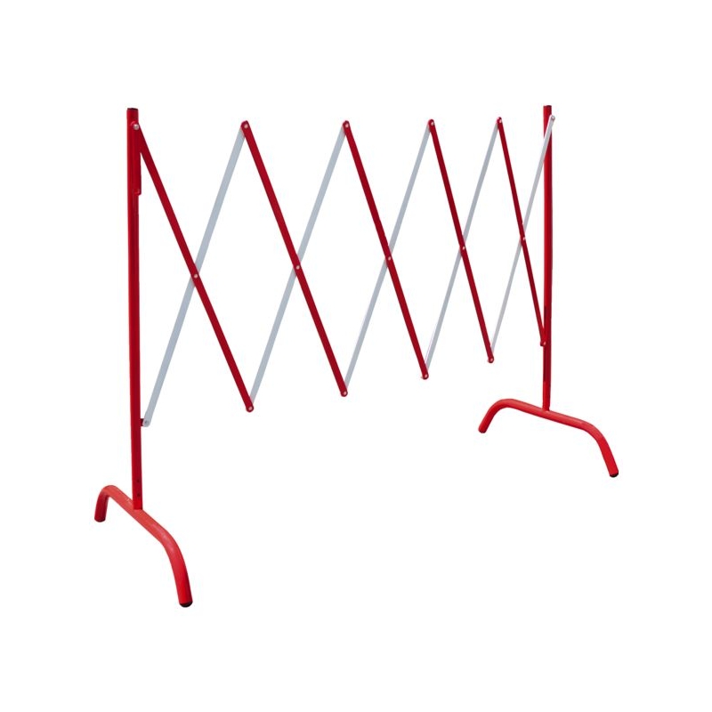 Structure pliable en acier peint rouge/blanc. Prévient et délimite les zones de chantier. Hauteur : 1050 mm Longueur pliée/dépliée : 200/2300 mm Largeur de base : 400 mm Poids : 7 kg