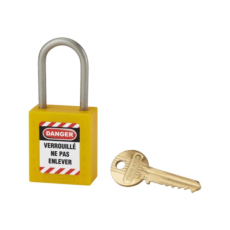 Corps ABS non conducteur avec anse en acier inoxydable. Double ancrage. Livré avec 1 clé. Fonction clé prisonnière. Corps (L x H) : 38 x 44 mm Conditionnement : boite