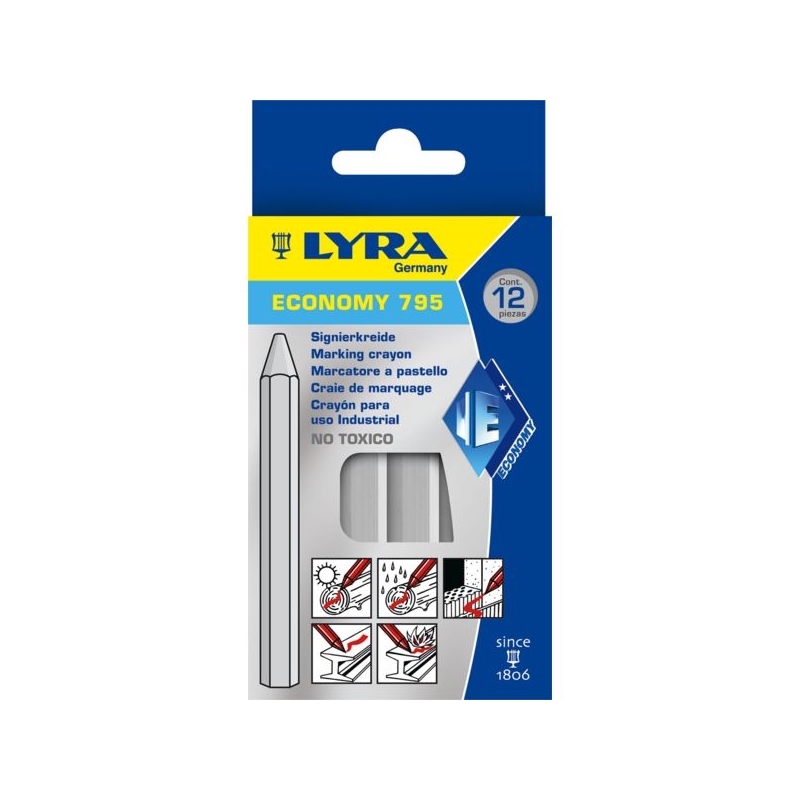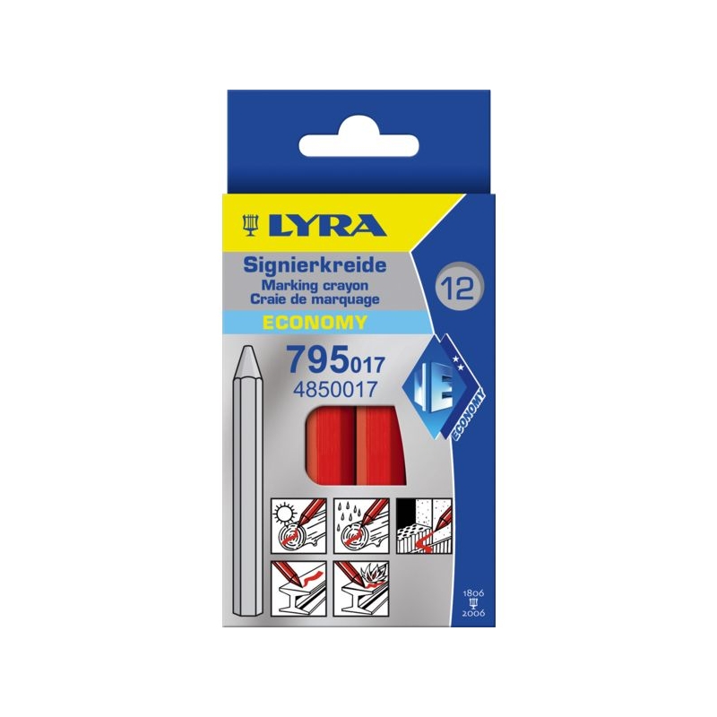 Craie de marquage sur bois, métal, pierre. Forme hexagonale Ø 11 mm, longueur 110 mm. Conditionnement : boîte de 12