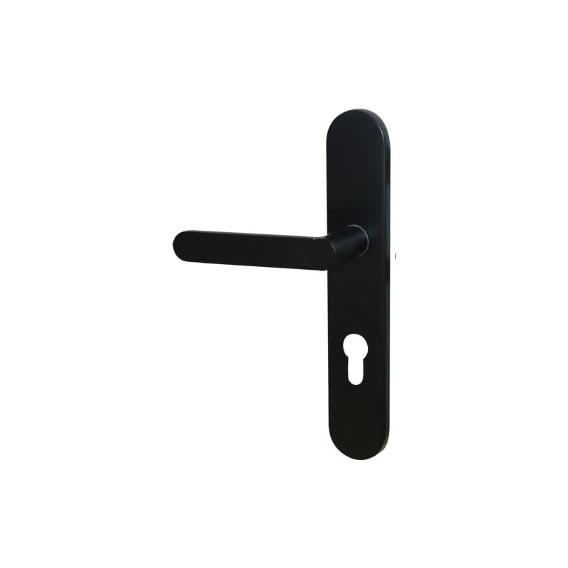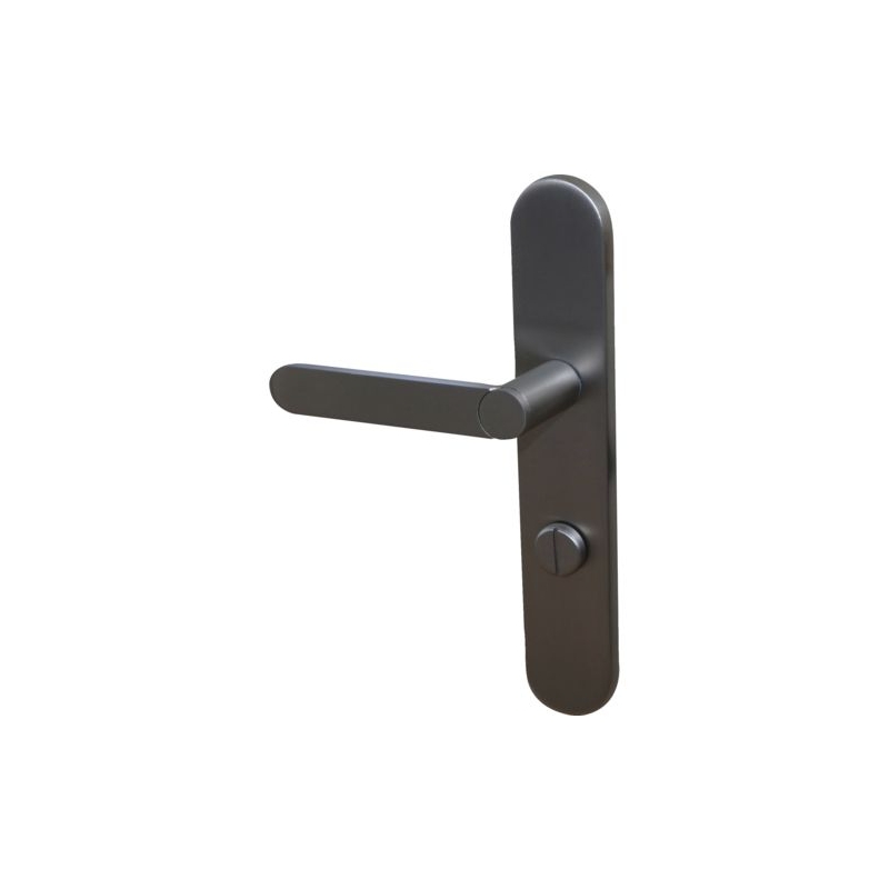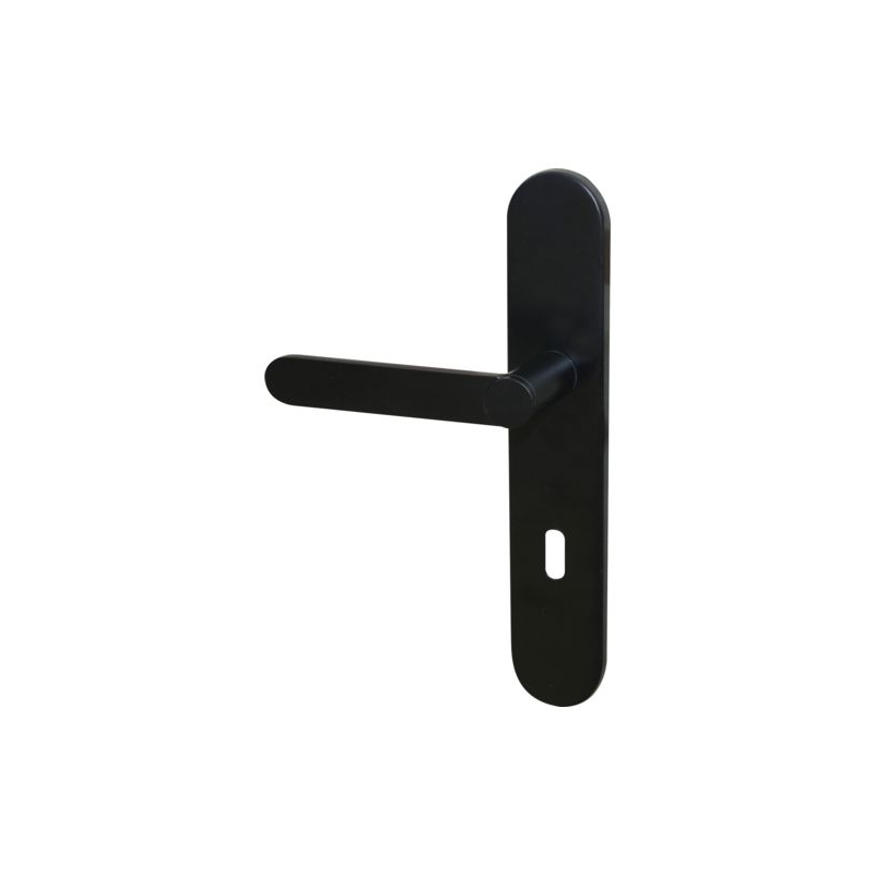 Pour porte intérieure d'épaisseur 38 à 50 mm. Système Easy K breveté made in France, fixation sans perçage, sans vis apparente, adaptable quelque soit l'entraxe 165 ou 195mm. Plaque : 220 x 42 mm Entraxe de serrure : 70 mm Longueur béquille : 114 mm Saillie de la béquille : 47 mm Fouillot carré : 7 mm Matière : Aluminium Conditionnement : boîte 100% recyclable.