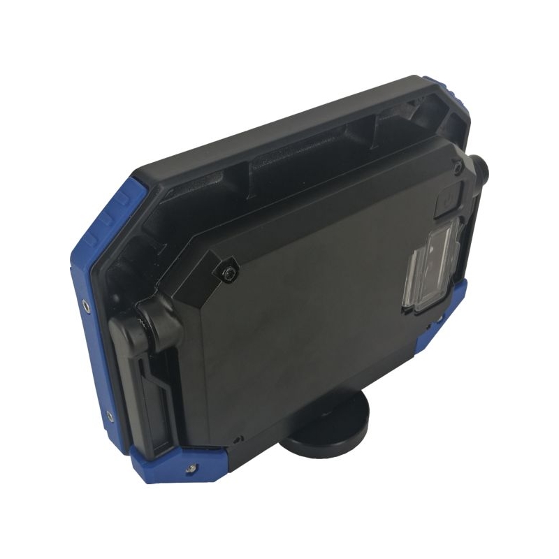 Boîtier extraplat en aluminium, à bords renforcés. Étrier pivotant à 180° équipé d'un aimant puissant 2 modes d'éclairage 50 ou 100 % Chargeur 230V / 50-60 Hz avec câble micro USB. Angle du faisceau LED : 120° Température de couleur : 4000 K Autonomie : 4 h Durée de chargement : 4 h Puissance : 20 W Flux lumineux : 2 200 lm Indice de protection : IP54