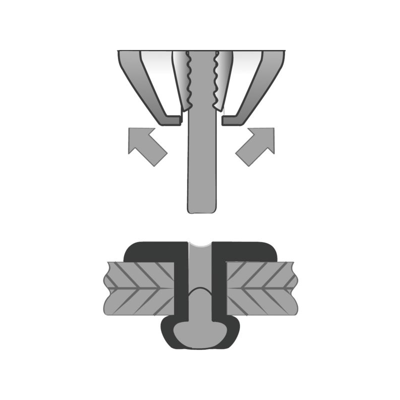 Rivet aveugle standard à tête large Ø 14 mm. Corps aluminium et tige acier. Ø perçage : 4,9 mm Boîte de : 250