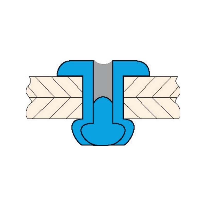 Rivet aveugle standard à tête plate. Corps et tige inox A2. Ø perçage : 4,1 pour rivet 4 mm - 4,9 pour 4,8 mm